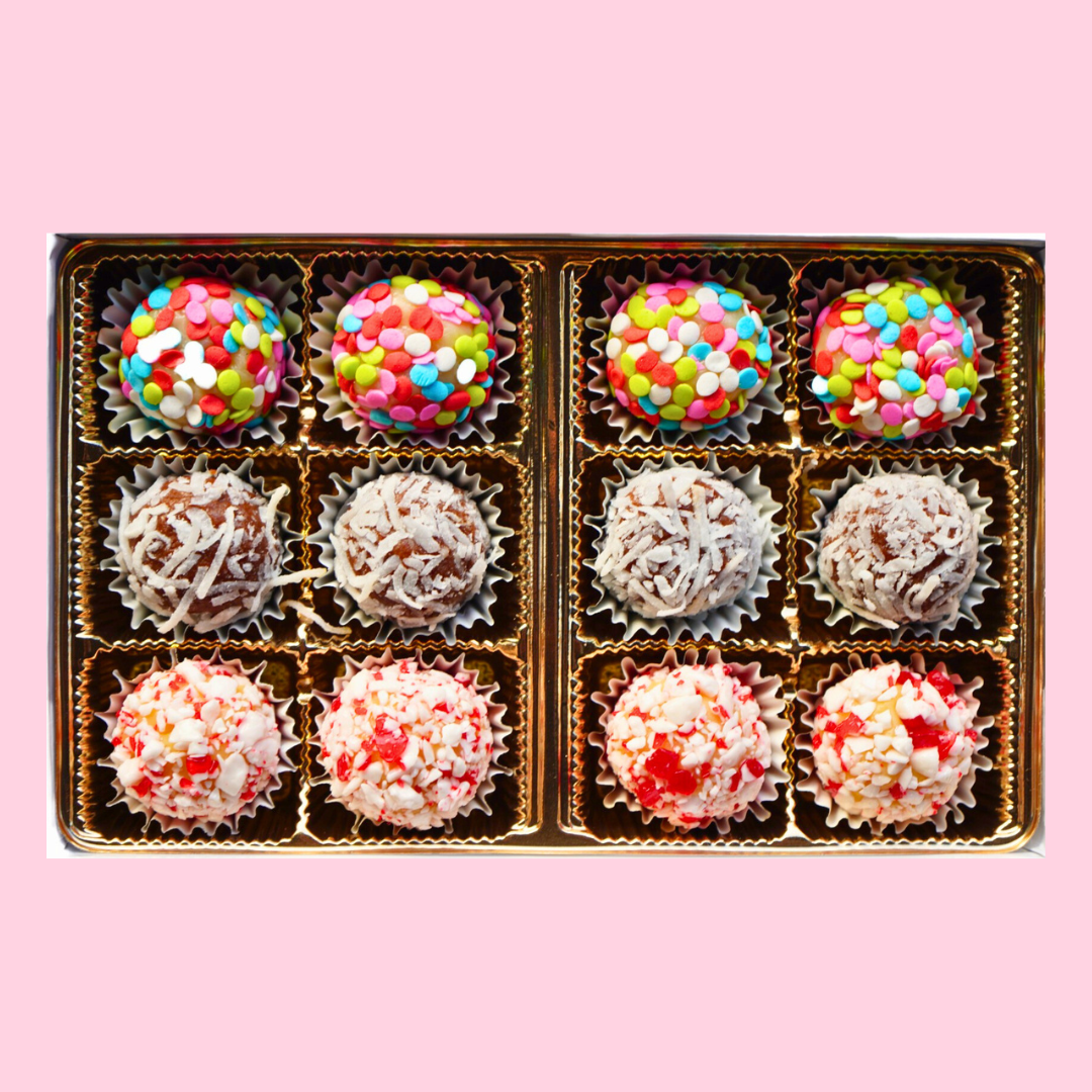 Coco Colors - Creamy Coconut Brigadeiro rolled in colorful confetti sprinkles to brighten your winter day.