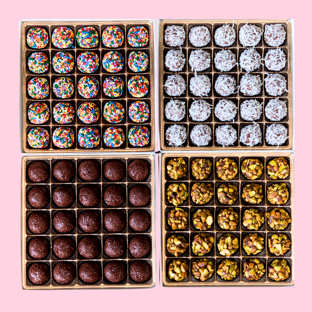 Select up to four flavors for every one hundred Brigadeiro.