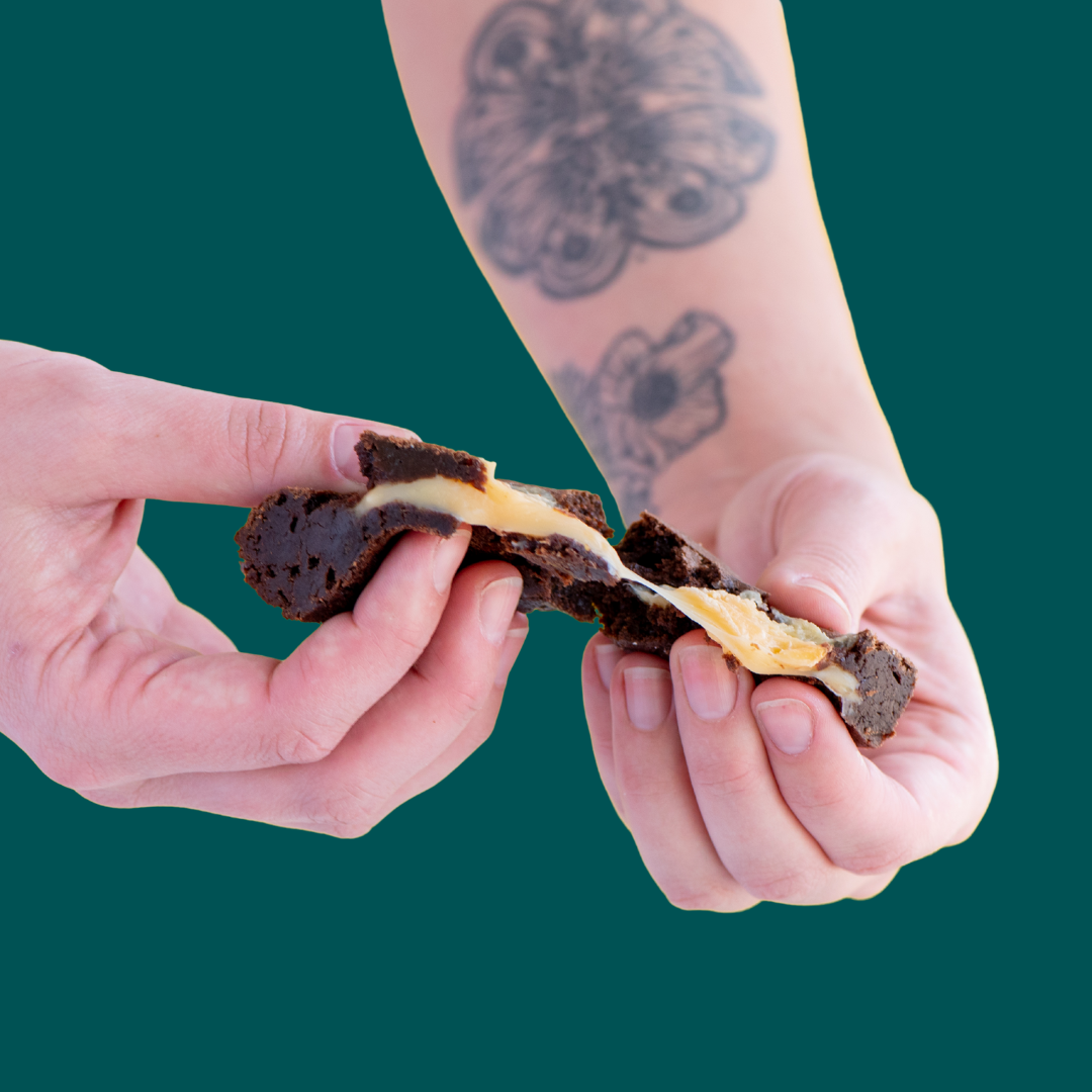 Sweet Milk Brownies: Dark and fudge-y triple chocolate brownies with gooey pockets of Maya's Sweet Milk Brigadeiros baked in!